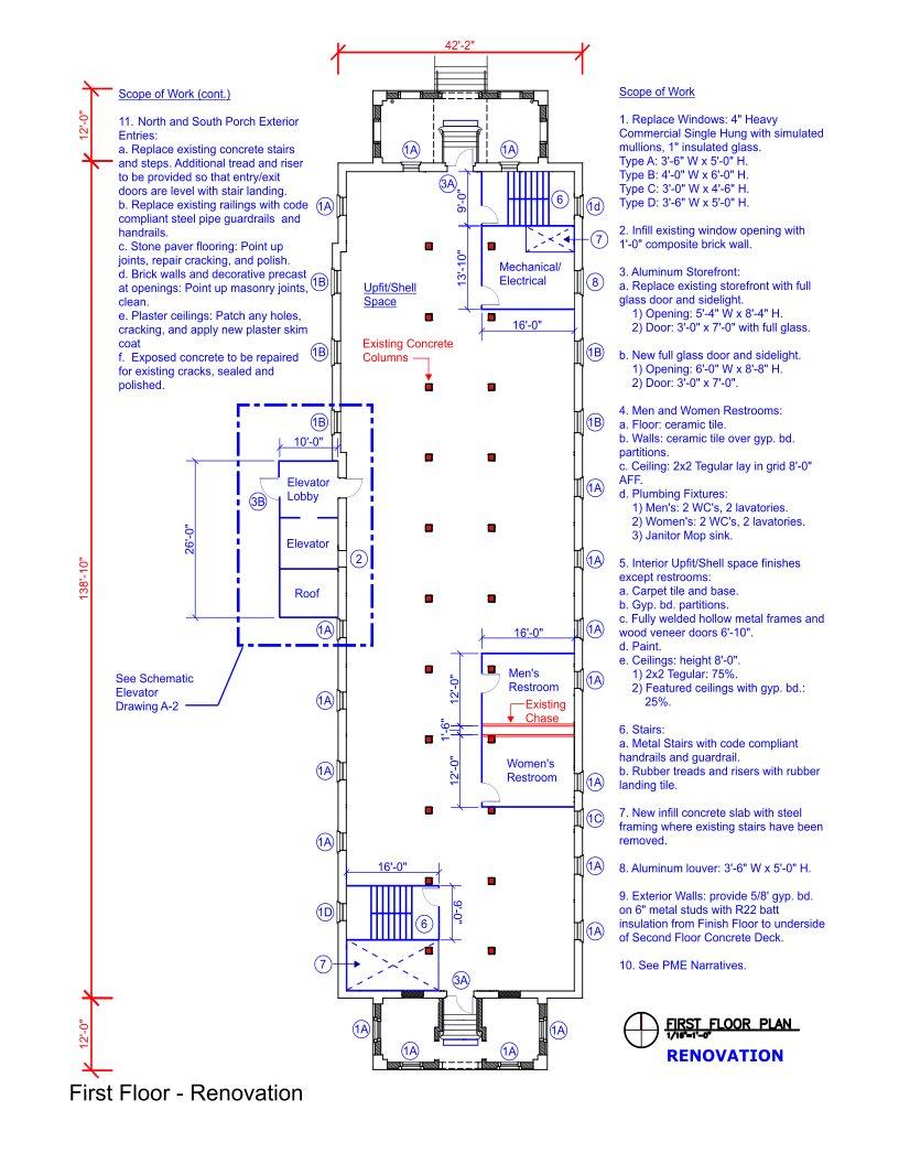 The project was an Existing Conditions Assessment and Renovation Study for Site, Architectural, PME/FP systems, and Code Compliance. The Final Report included a detailed Cost Estimate for full renovation that included Exterior Envelope Remediations, Elevator Addition, Interior Upfit and PME/FP and IT systems for future Administrative Use. The Building’s original use was a Dormitory.