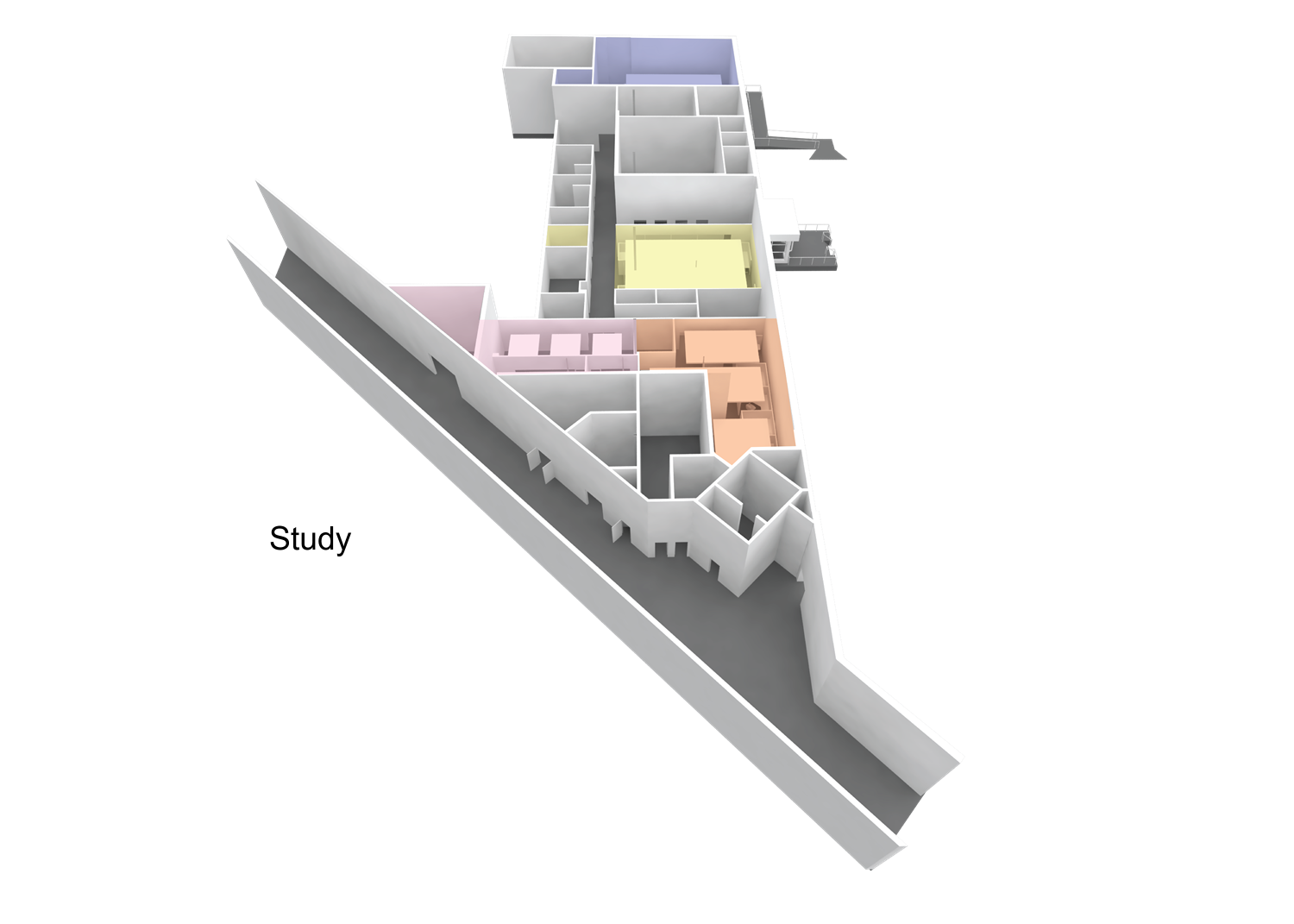 The College’s IT Services were relocated from the Student Center to an area within an existing 1960’s warehouse. The area required a complete interior renovation. Spaces include the College’s Server Room, open office areas, enclosed offices and meeting areas. There were exterior renovations for the staff entry, a ramped service entry and a loading dock.